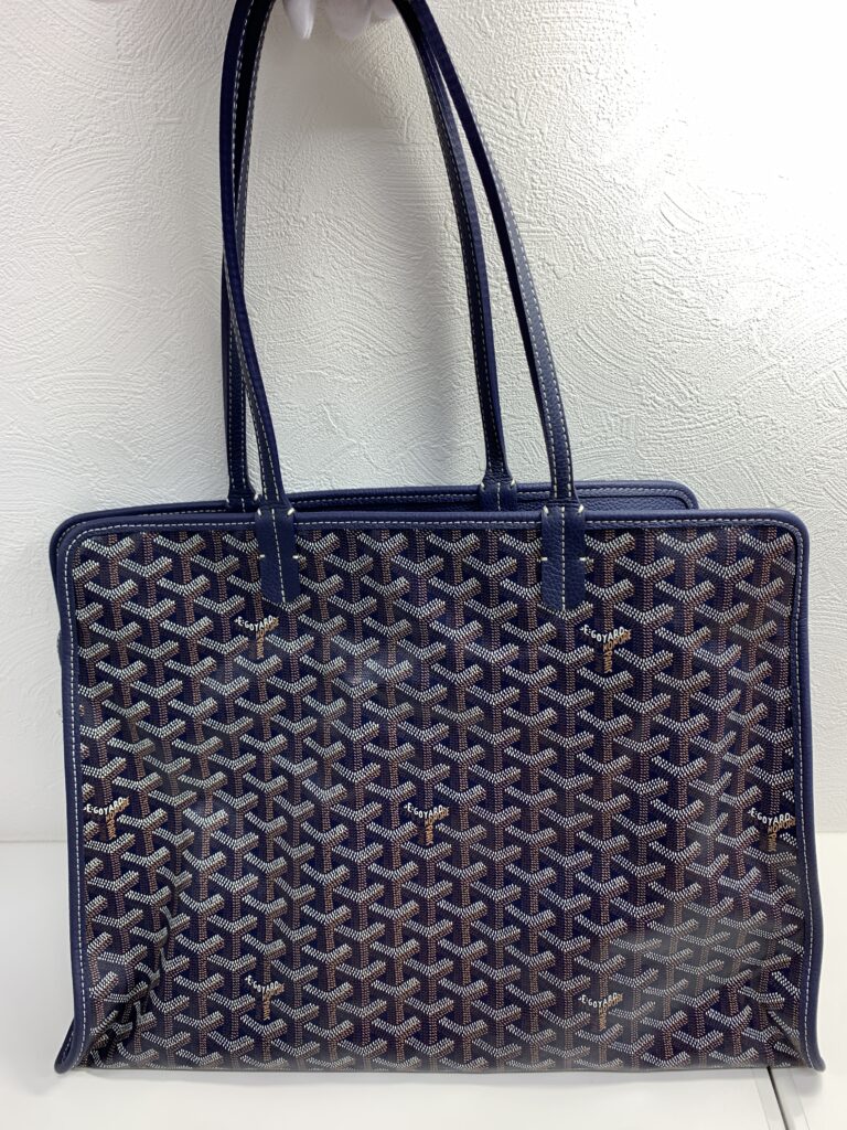 特徴的な「Y」の連続パターンが印象的なゴヤールのバッグは、他のブランドとは一線を画すエレガントさと個性を兼ね備えており、世界中のセレブからも愛されています。今回お持ち込みいただいたのは、ネイビーの上品なカラーで、カジュアルにもフォーマルにも使いやすい逸品です。